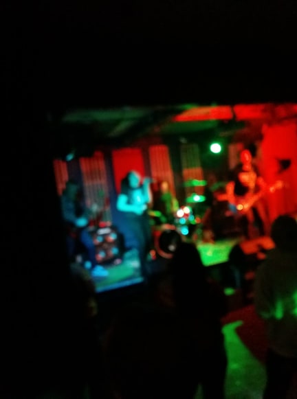 I’ve heard the name Mean Caesar in my dreams, or in a past life, or in my own head as I read a Scary Clown Presents poster without thinking about it. It’s familiar but I have no idea who they are. Five bodies begin to crowd the stage, their cluster almost rivalling the gathering of us making up the actual crowd (it is still early). You can feel a slight swell in the air, like the bit of tension you give the pull cord of a lawnmower before the massive yank that gets things ripping. Everyone’s feeling it. Then go: band number one spikes in. The first thing I always notice is tempo, and this is nicely set by Mean Caesar: on the right side of mid-pace. Not too slow as to stall the engine (sluggishness some openers can be very guilty of) and I still know I’m listening to a punk band. I could have gone faster, but I’m a maniac. After the first tightly executed song, the singer puzzles us all by stopping to let everyone know in a thick-as-gravy northern accent that the group are here tonight all the way from London. Quickly starting back up, the band sounds sharp and colourful, as if their amplifiers are fitted with stained glass speaker cones. There’s flowing chord movements, crazed shuffling dance moves and cool melodies. Songs short and pleasantly airy like a fresh hair cut; heads are bobbing. Tonight’s stage is almost the size of a disabled toilet cubicle, with the fully fleshed quintet + backline crammed in, and Mr Lead Vocals still makes room to properly dance to his tunes. Lot’s of bands move, but to dance, to really jam, is something different. We do not see it enough at small punk concerts. Their set is over too soon, applause.